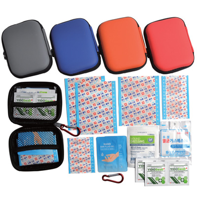| 기타사항 | 표준밴드8p/대형밴드2p/사각밴드2p/미니밴드4p/손소독제2p/멸균거즈1p/ 드레싱밴드1p/알콜솜4p/카라비너(옵션)/구급케이스 ※ 카라비너 추가 구매 상품. ※밴드이미지는 변경될수있음 |