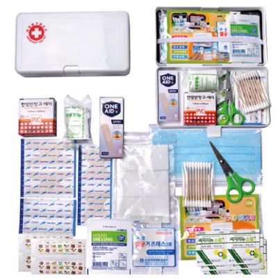 | 기타사항 | 반창고, 8P밴드, 붕대소, 10P면봉, 일회용마스크, 6P절솜, 가위, 드레싱밴드, 멸균거즈2P 1장, 알콜솜6P, 위생장갑, 칼라밴드4P, 손끝밴드2P, 관절밴드2P, 방수밴드2P ※밴드이미지는 변경될수있음 |