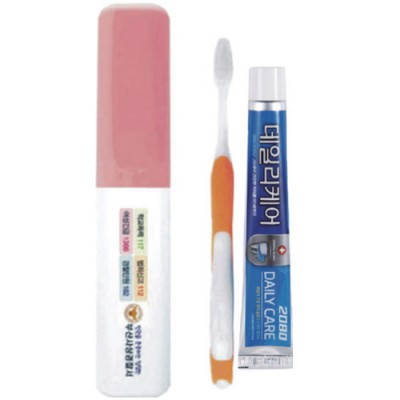 | 기타사항 | (종이케이스별도 100원) •Size:200x40x25mm •2080치약50g,국산칫솔 ※구성품 교체 가능 / 칼라인쇄시 100원추가 |